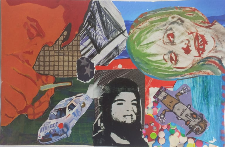 A colagem é uma expressão plástica que oferece um meio verbal de autoexpressão, excelente meio de estimular a criatividade e organização espacial.